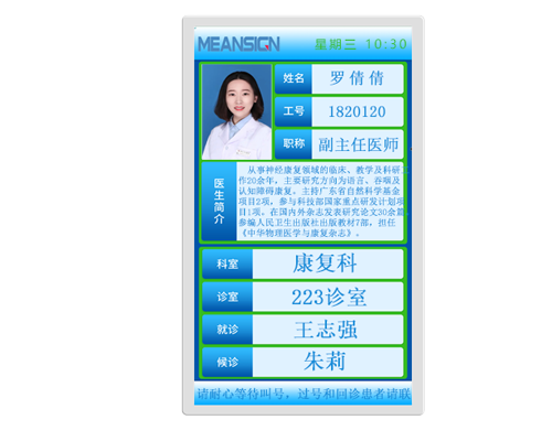 用途:醫(yī)生診室門口屏,用于顯示二級(jí)分診叫號(hào)信息