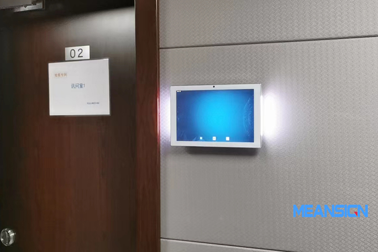 在公司內(nèi)部每個辦公室、會議室門口,安裝10.1英寸的會議電子門牌,顯示會議室辦公室名稱、企業(yè)名稱、日期時間等信息,顯示文字、圖像、音視頻、動畫等信息。發(fā)布企業(yè)通知公告、企業(yè)宣傳片、企業(yè)文化、企業(yè)活動、培訓信息、優(yōu)秀員工、公益活動、節(jié)日主題氛圍、參觀視察、溫馨提示等。